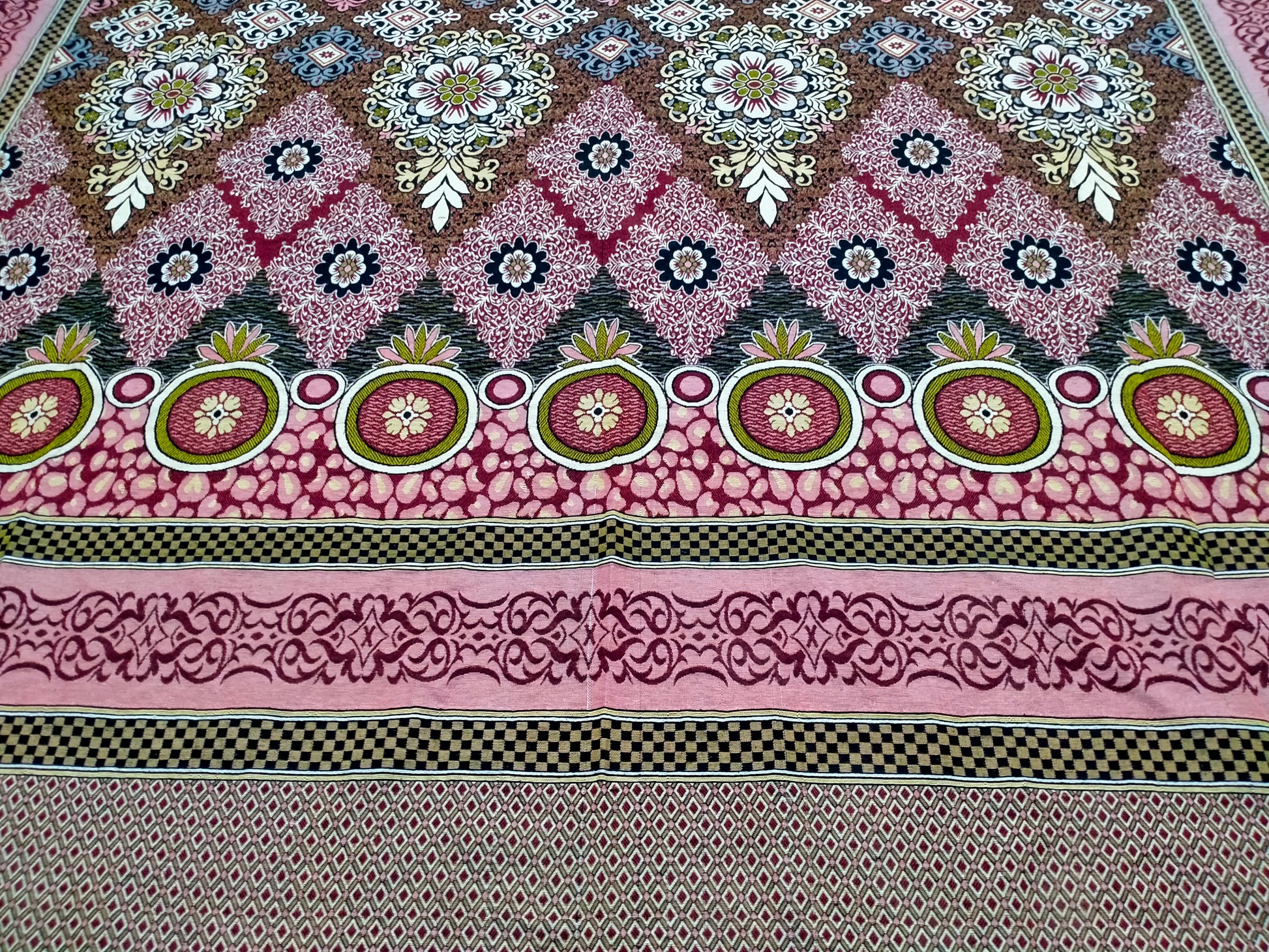 Crafted in the style of Multani Gultex bedsheets but made with heavy, durable fabric, this Traditional Multani Jazem – 9x11.5 Ft –Heritage Floral Classic features a classic geometric pattern that beautifully represents the heritage of Multani craftsmanship. Its elegant motifs and bordered layout bring a touch of timeless sophistication to any space.