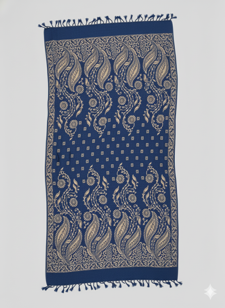 Embrace timeless charm with this premium velvet shawl. Woven with a rich heritage pattern, it offers a soft texture, cozy warmth, and an elegant drape — perfect for winter evenings, festive gatherings, and everyday wear.